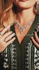 يعكس قفطان زمرد الليل فخامة مغربية تنبض بهدوء المساء. يمتزج لون العاج المشرق مع تطريزات خضراء عميقة تبرز أناقة الخطوط العمودية وتمنح القوام طولًا وهيبة. الأكمام الواسعة والحزام المنحوت يضيفان توازنًا ملكيًا، لتصبح القطعة مثالية للمناسبات الراقية والأمسيات الرسمية.
